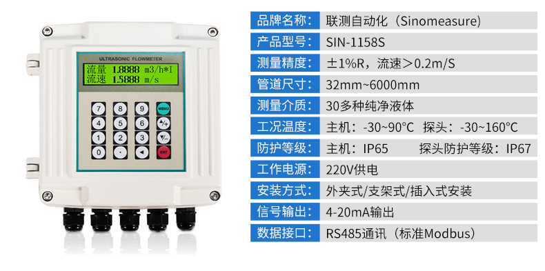 SIN-1158R外夾式或者管段式超聲波流量?jī)x表是以“速度差法”為原理,測(cè)量圓管內(nèi)液體流量的儀表。它采用了先進(jìn)的多脈沖技術(shù)、信號(hào)數(shù)字化處理技術(shù)及糾錯(cuò)技術(shù),使流量?jī)x表更能適應(yīng)工業(yè)現(xiàn)場(chǎng)的環(huán)境,計(jì)量更方便、經(jīng)濟(jì)、準(zhǔn)確。產(chǎn)品達(dá)到國內(nèi)外先進(jìn)水平,可廣泛應(yīng)用于石油、化工、冶金、電力、給排水等領(lǐng)域。