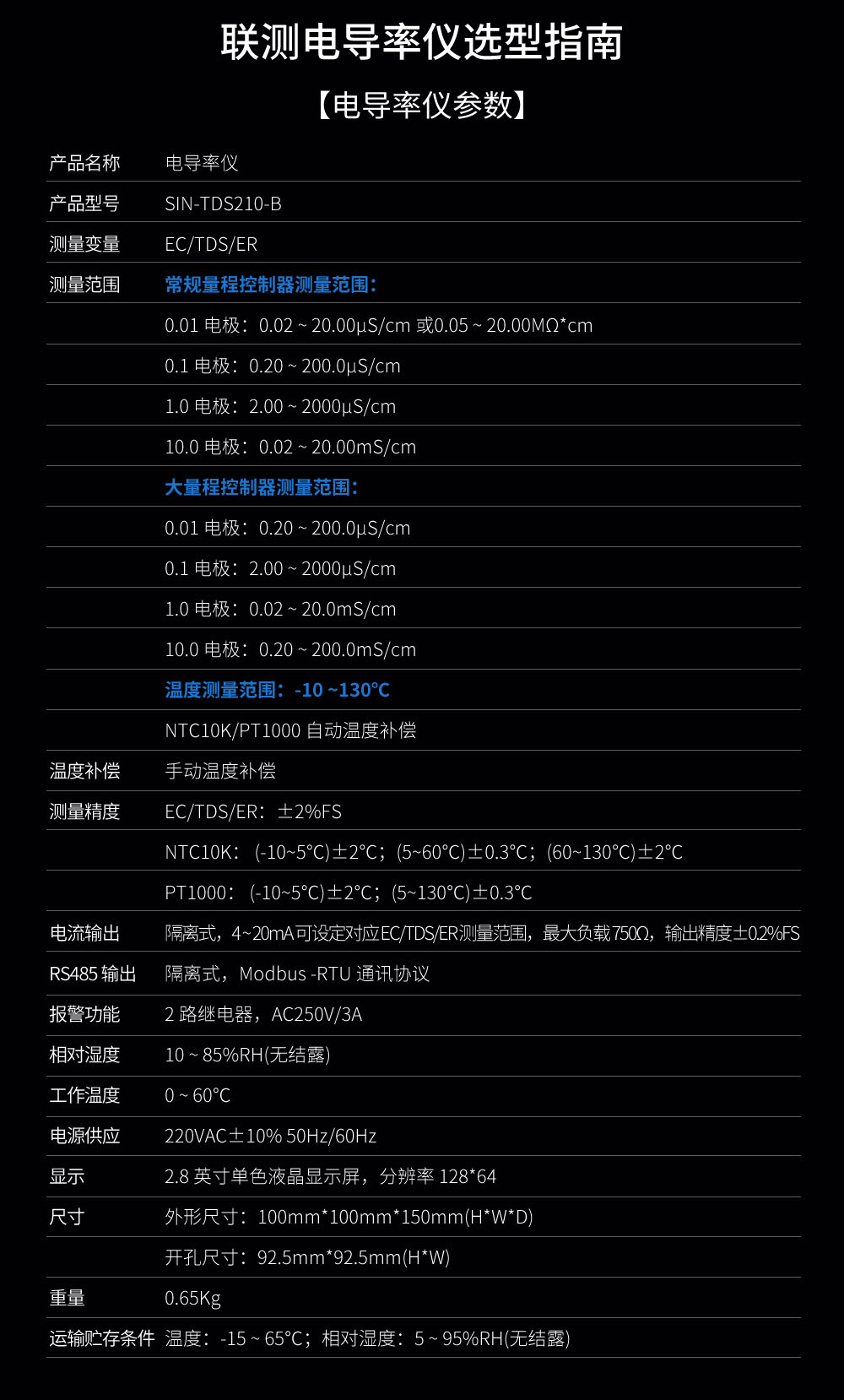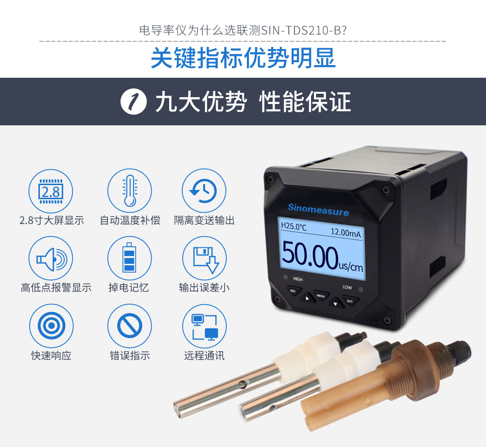 SIN-TDS210-B工業(yè)電導(dǎo)率儀表,廣泛應(yīng)用于火電、化工化肥、冶金、環(huán)保、制藥、生 化、食品和自來水等行業(yè)??刂破髦饕獙θ芤褐械碾妼?dǎo)率/總?cè)芙夤腆w/ 電阻率和溫度進(jìn)行連續(xù)監(jiān)測。