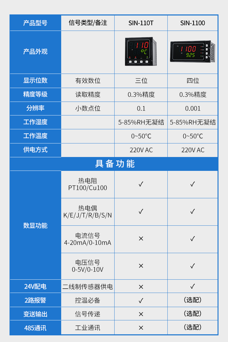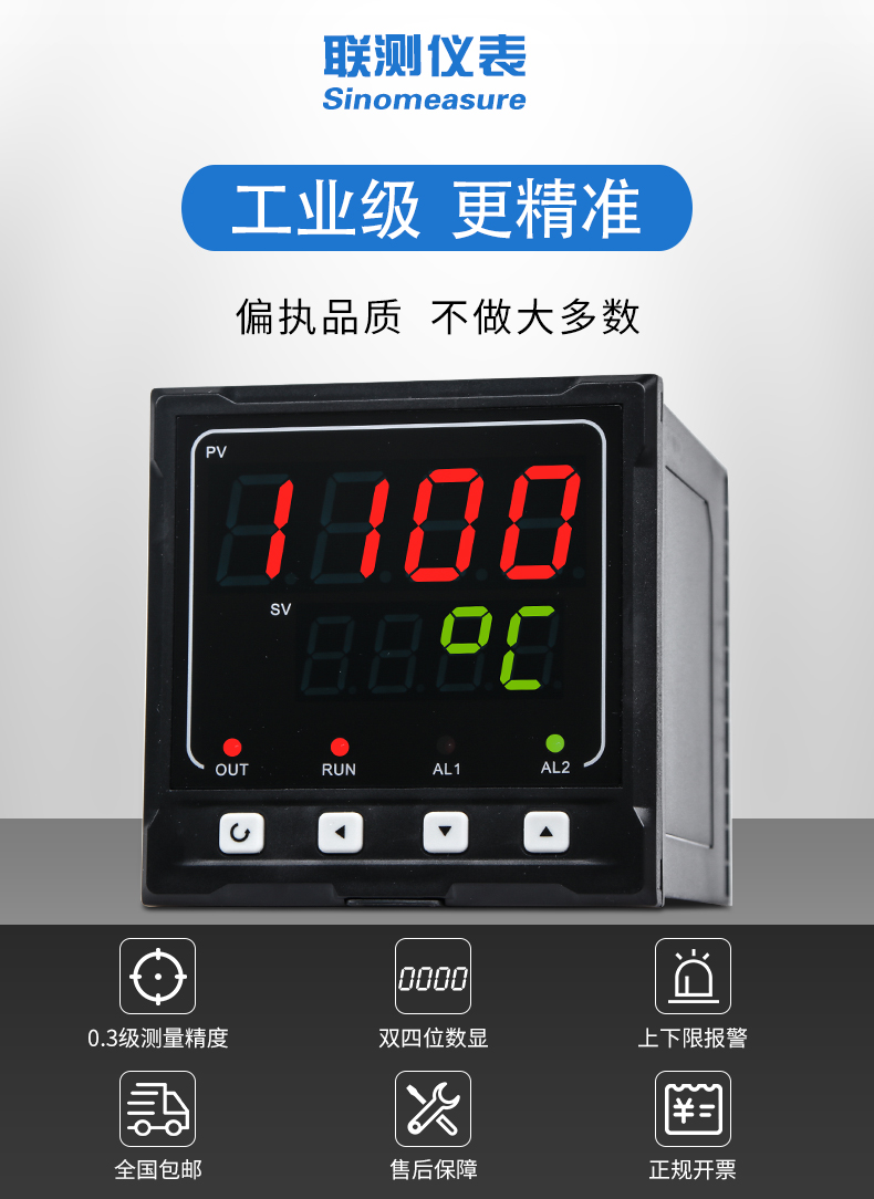 聯(lián)測(cè)SIN-1100數(shù)顯表(簡(jiǎn)易型),傻瓜式操作,0.3級(jí)測(cè)量精度,7款外型尺寸,雙四位LED顯示,可支持熱電偶、熱電阻、電壓(可開(kāi)方運(yùn)算)