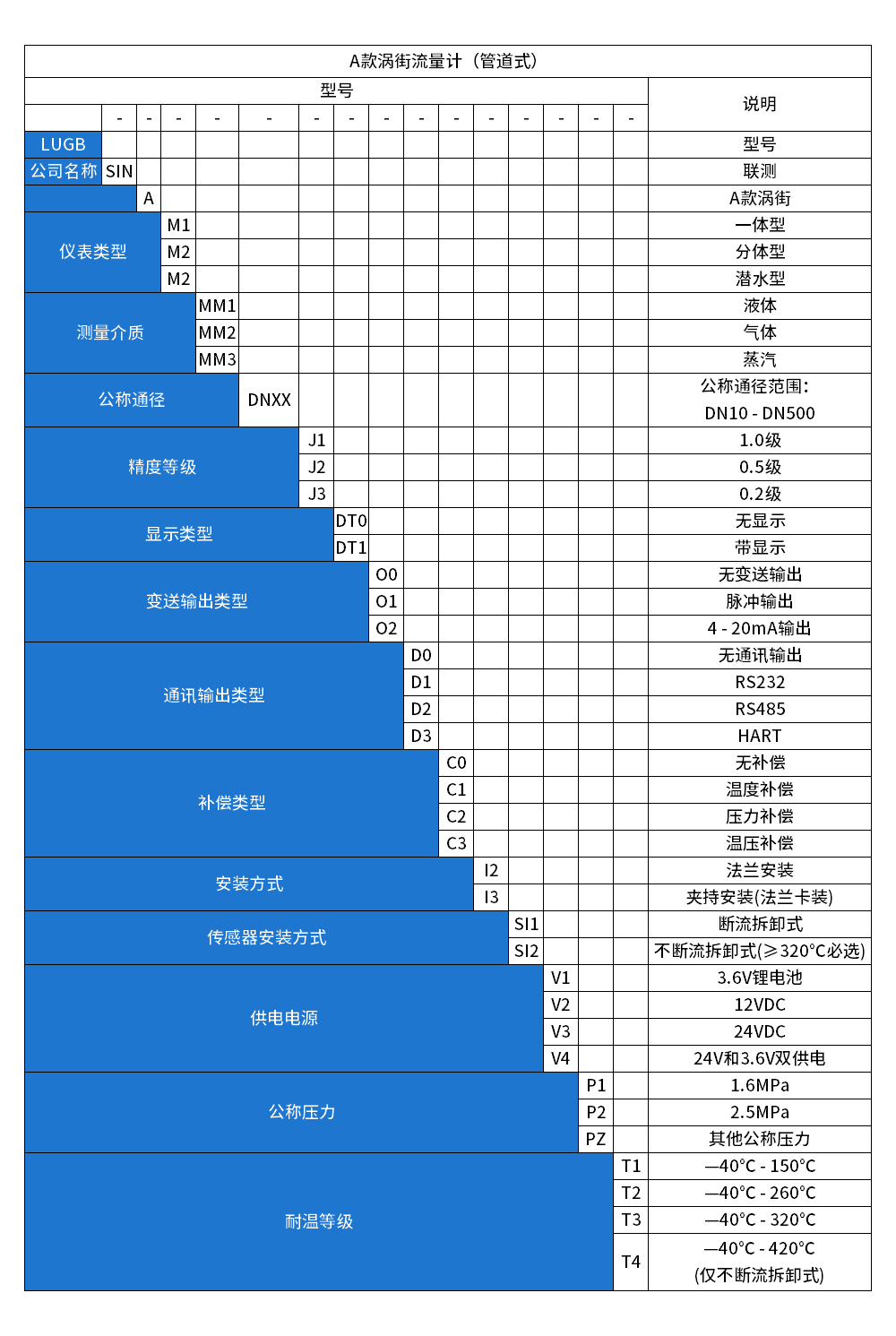 LUGB-SIN-A渦街流量儀表廣泛用于供熱公司、熱力公司、化工行業(yè)等行業(yè),對(duì)過熱蒸汽、飽和蒸汽、壓縮空氣和一般氣體、水和液體的計(jì)量和控制。加厚本體