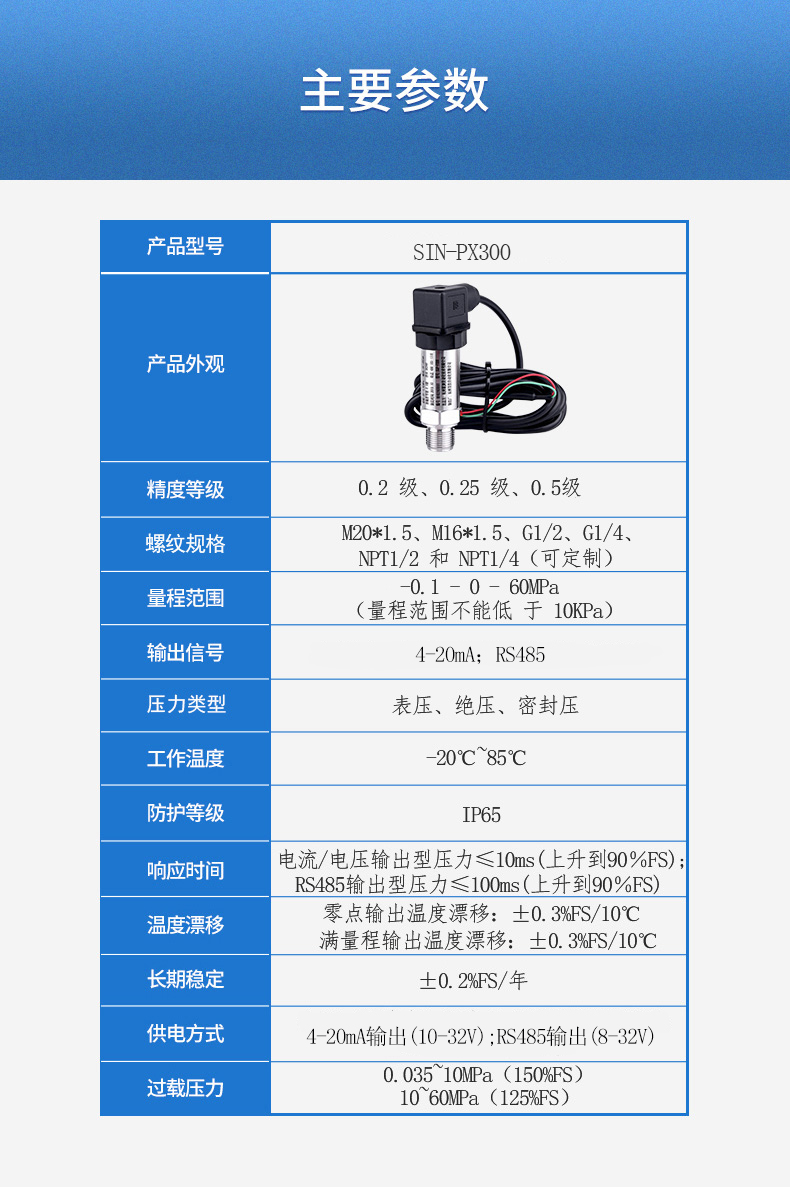SIN-PX300型數(shù)顯壓力變送器采用無縫焊接結構,可批量化生產,經濟、可靠,具有良好的適應性,可應用于各種復雜的環(huán)境,該產品輸出形式多樣,壓力接口可提供定制,滿足您的使用需求。同時數(shù)顯壓力變送器帶有現(xiàn)場顯示功能,能夠更加直觀的顯示現(xiàn)場的壓力波動情況。廣泛應用于工業(yè)自動化設備配套以及石油、化工、冶金、電力等控制領域。