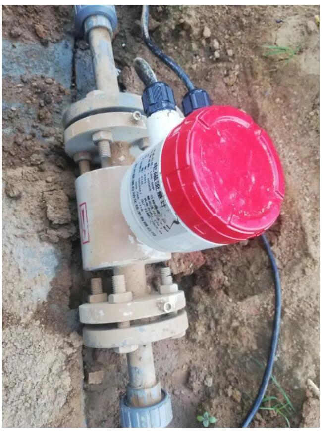 鄒工在現(xiàn)場調(diào)試,電磁流量計進行計量,數(shù)據(jù)通過云平臺進行監(jiān)控,現(xiàn)場總計裝有56臺分體式電磁流量計。